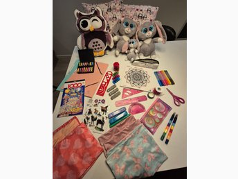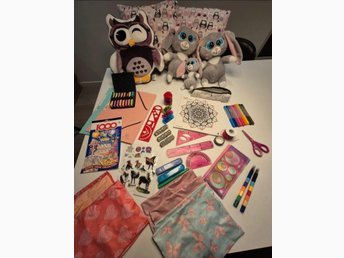 Kreativt set med gosedjur, ritmaterial och mer