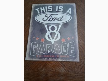 retroplåtskylt 32x40 cm ford v8 garage