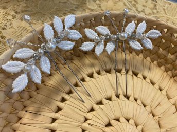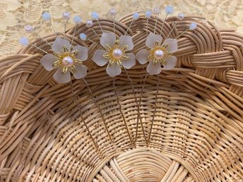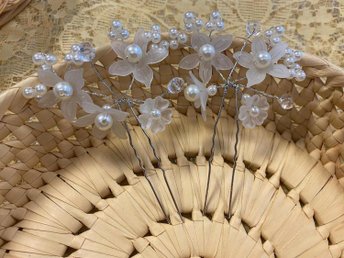 5st Bröllops Hårnålar med Vita Blommor och Pärlor