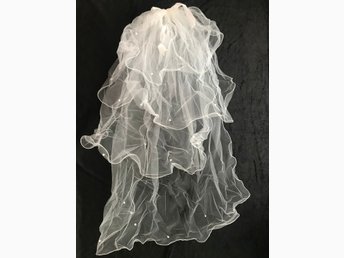 Vit brudslöja, ny, två lager, 80+150cm lång
