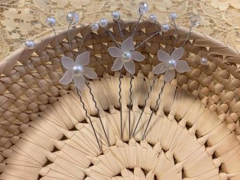 Hårspännen med Vita Blommor och Pärlor