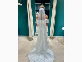 Vit brudslöja, ny, två lager, 300cm+80cm lång