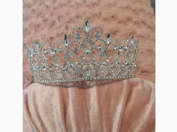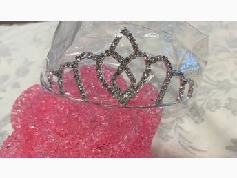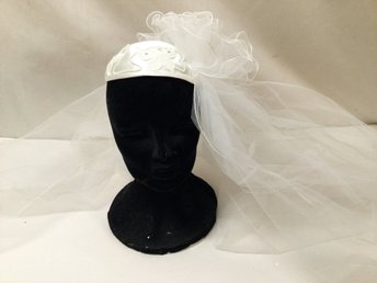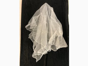 Kort vit slöja med kristaller och kantband - ny i förpackning!