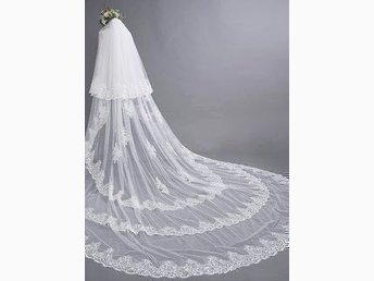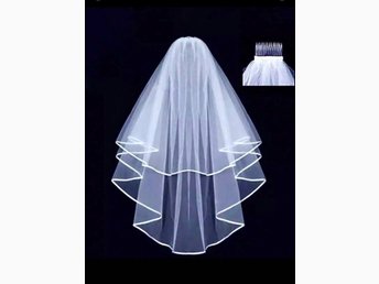 Ny, Oanvänd Vit Dubbellager Brudslöja, 80+210cm