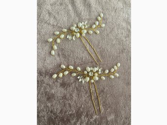 Hårsmycke- Skir ”guldtråd” med vita pärlor och klara pärlor