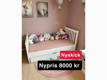 Specialtillverkad juniorsäng i NYSKICK. Babylove. Barnsäng, förvaring & madrass