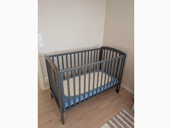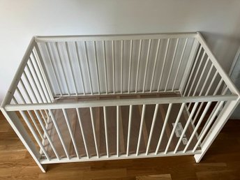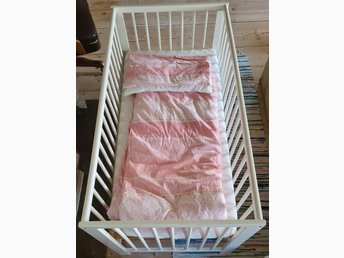 IKEA spjälsäng 120x60 med madrass, täcke, påslakan, kudde och örngott/kuddvar.