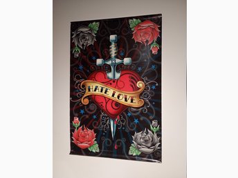 Poster i Traditionell Tatueringsstil – Hjärta och Dolk “HATE LOVE”