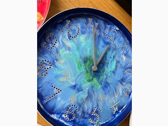 Nya Unik handmålad väggklocka blått och grönt mönster