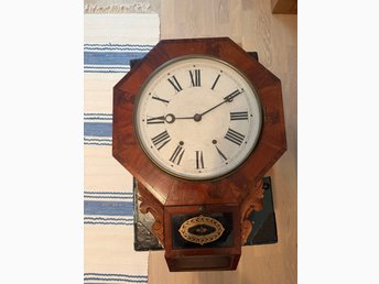 Väggklocka i trä, åttakantig, kvartsverk