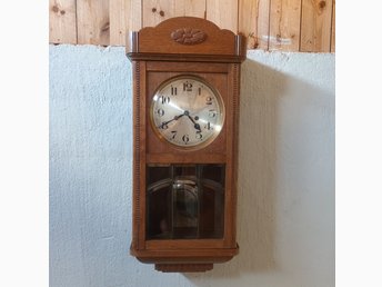 Antik Väggklocka Tyskland tillverkning i Trä med Pendel