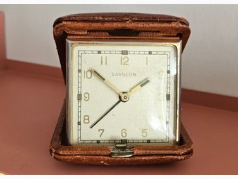 Savillon reseväckarklocka i läderfodral