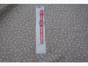 Ny Barn klocka med röd urtavla och rött plast armband med färgade hjärtan