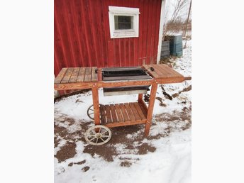 Grill med träunderrede på hjul