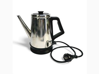 Elektrisk kaffekanna i rostfritt stål – klassisk retrodesign med svart handtag