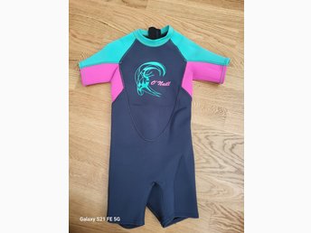 O'Neill mörkblå, rosa, turkos våtdräkt neopren strl 4 år