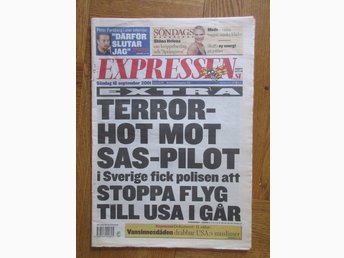 EXPRESSEN,16 SEP.2001,TERRORATTACKEN 9/11, HOTET MOT SAS-PILOT FLYG STOPPADE