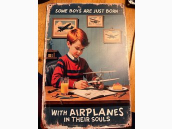 Metallskylt pojke med flygplan - perfekt present att sätta på väggen - NY