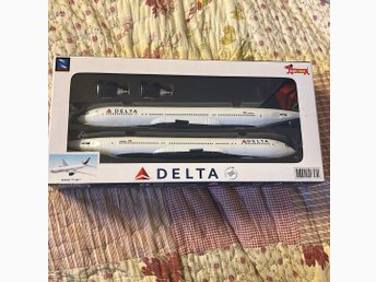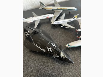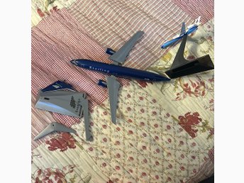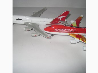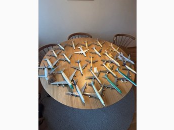 Låda innehållande 23 modellflyg. Boeing 747 Cargo m.fl. blandat skick