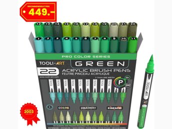 NYTT Set med 22 gröna Akrylfärgpennor • 0,7 mm spets • Vattenbaserad • SV