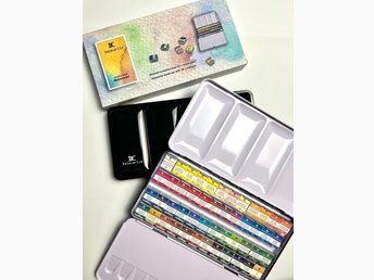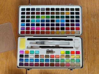 Väldigt stort Akvarell färg set i metall ask helt nytt oanvända akvarellfärger