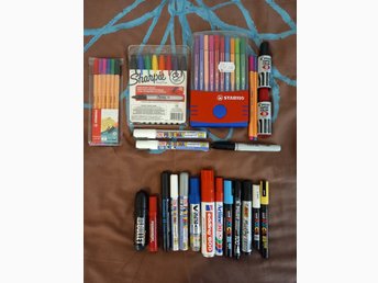 Blandade färgpennor i varierande skick. Graffiti Konst Klotter Skissa Måla Rita