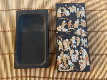 Fint bläck tråg i sten och kalligrafi pensel i bambu med buffelhorn.