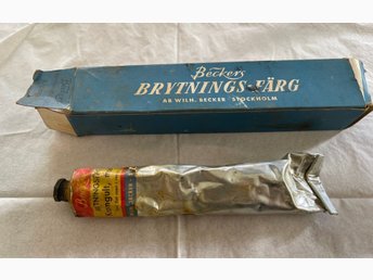Beckers brytningsfärg i originalkartong. Kromgult, medel. Troligen 1950-tal