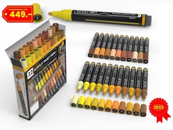 NYTT Set med 22 Akrylfärgpennor • Assorted Yellow Tones • 3 mm • Vattenbaserad
