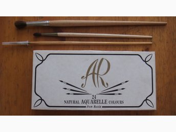 AKVARELLSET "AR" 24 KULÖRER FULLSKALA HÖG KVALITÈ 3 OLIKA PENSLAR FINA NATUR