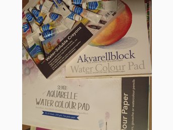 Akvarellblock, vykort och Scola Aqua-Pastellkritor