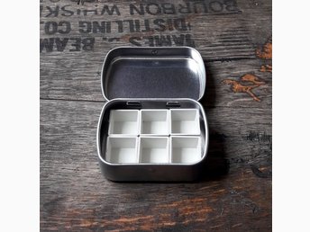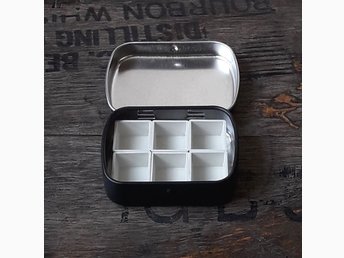 Svart Metallask Med Sex Tomma Magnetiska Halvkoppar För Akvarellfärg