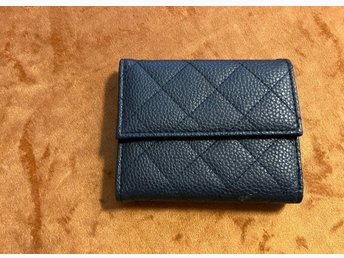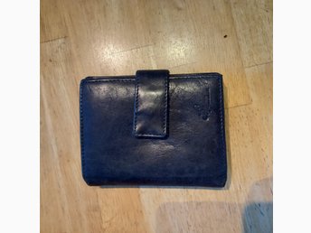 Ny. Blå plånbok. För kort och kontanter. Vet ej material.