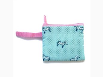 8,8x9,5cm Zebra Ljusblå Rosa Liten Portmonnä med Dragkedja för Smycken Mynt