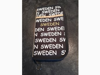 Förvaringsetui med dragkedja. Fack för bl a kort, papper. SWEDEN tryckt/ utsida.
