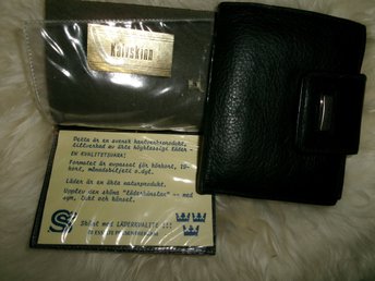 Ny retro svart skinnplånbok. Tryck på insidan: Karlstads Sparbank.