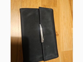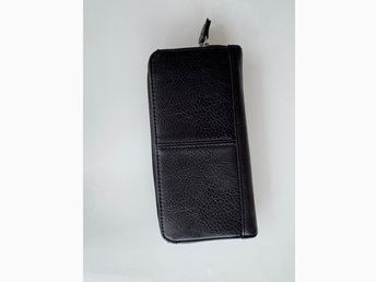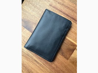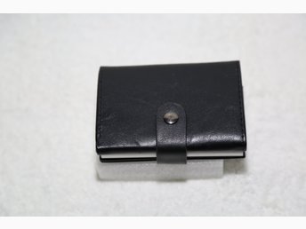 Ny svart PLÅNBOK i äkta skinn, 12,5x9,5cm, 10 fack för kreditkort, mycket fin300