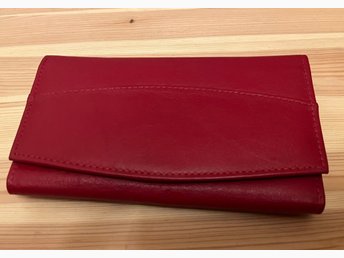 Röd plånbok. 10x15,5cm. I okej skick. Material vet inte.
