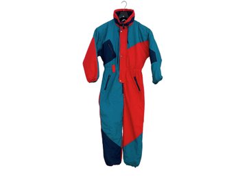 Vintage Blue and Red Ski Suit Size 152: Retro One Piece Snowsuit
