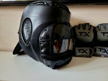 S.O.C. hjälm,huvudskydd Suit TX Combatives med MMA handskar st.L