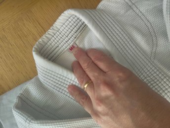 Vitt kampsportsbälte, Adidas. Normalt bruksskick