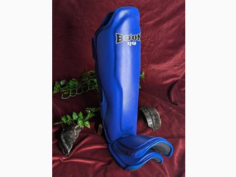 Benskydd för kampsport, blå, storlek S