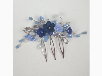 Unikt Hårspänne Blå Tyg Ros Glittrig Retro Vintage Hårnål Hår Accessoar Somrig