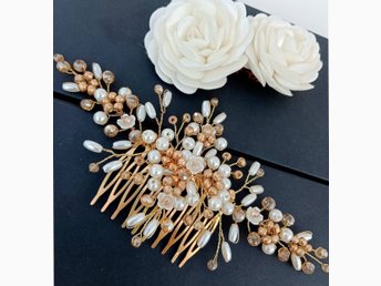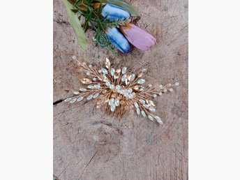 Hårsmycke i guldfärg och korall med rosa syntetiska stenar