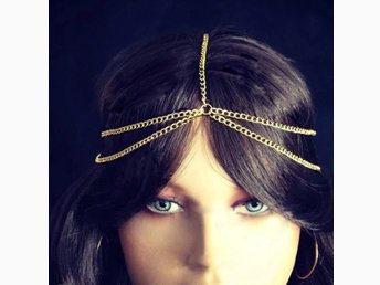 Retro Hårsmycke / Bohemiskt Hår Smycke med Guld Kedjor - Hippie Boho