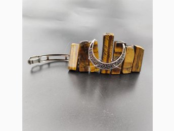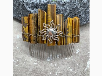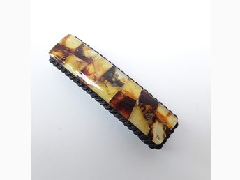 Amber hårklämma med baltisk bärnstensmosaik Lång hårklämma med ädelsten