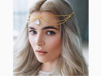 Retro Hårsmycke / Boho Bohemiskt Hår Smycke med Guld Kedjor & Rhinestones