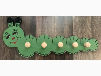 Vägghängare larv i trä – handmålad barninredning retro ca 31 cm