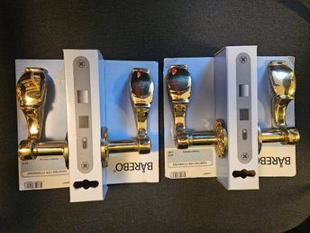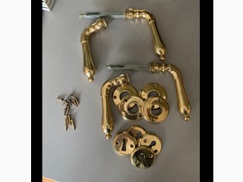 Dörrandtag för ytterdörr 2 st polerat mässing Handtagsskruvar och hylsa saknas
