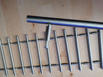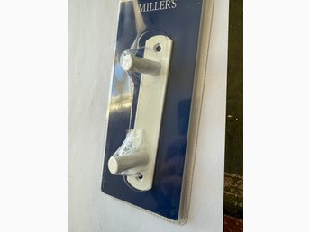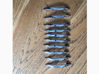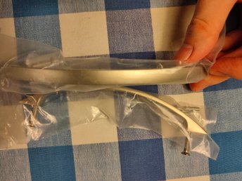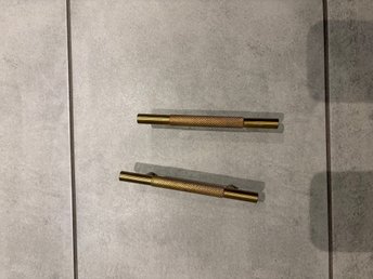 2 skåp/lådhandtag i metall, 15,5cm långa, 12,5cm mellan skruvarna